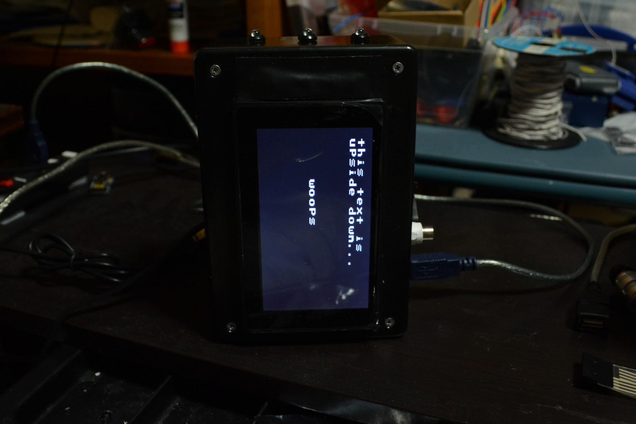 - Everything was sideways!!! The TVOut library is designed to output text and graphics to a screen that is in a landscape orientation, like all TVs are and computer screens – this means that the screen is wider than it is tall. However, because I’m a dolt and didn’t check any of this out before soldering all my connections, cutting my enclosure, and gluing everything permanently in place, my screen ended up being in portrait orientation, which mean that using the TVout library without any modifications resulted in text being drawn sideways (if you were to tilt your head 90 degrees clockwise it would become readable, see the below pictures).